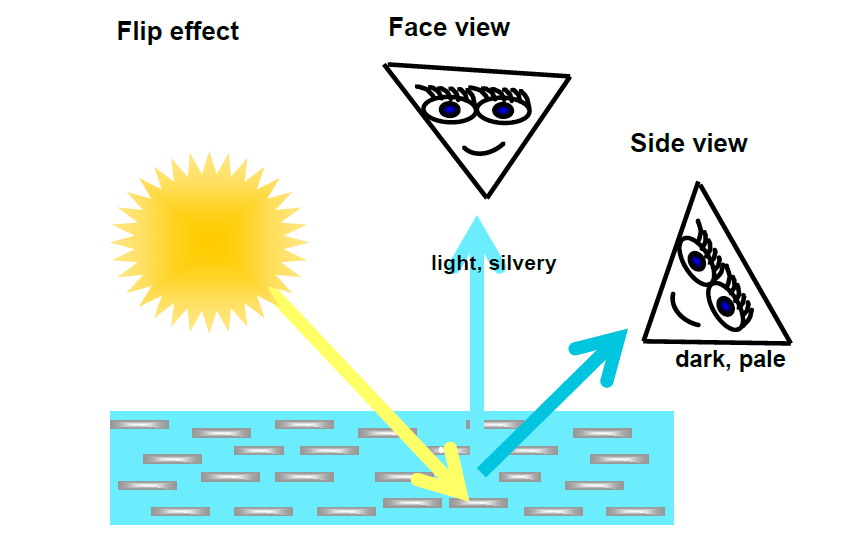 The flip effect is brought about by the aluminum pigment. There are different sizes, size distributions and different types of aluminum pigments with different flip behaviors.