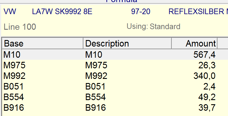 Even if your color search does not offer a satisfying solution and blend-in repair is not applicable, you can still adjust the color of a formulation.