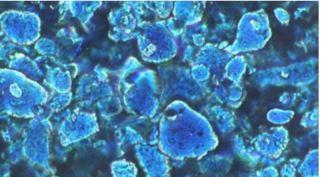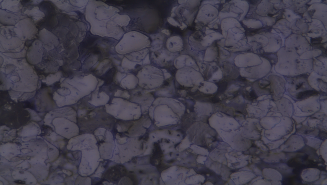 Figure: Opaque pigments (dark particles) partially hide the surface of the aluminium flakes.