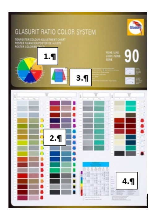 PLEASE NOTE: Pay attention to the concentration of the mixing base! In the first step, try to match the color with the mixing bases from the mixing formula. (This avoids the risk of creating metamerism.) If you cannot match the color with these mixing bases, consult the color adjustment chart to select another mixing base.