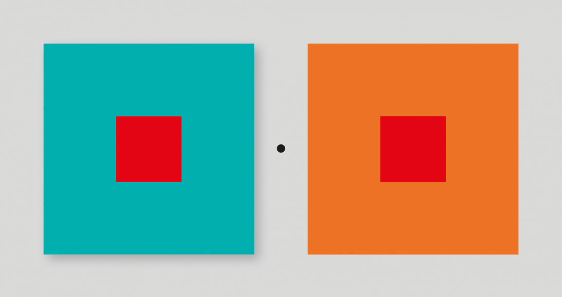 The illustrations besides demonstrate simultaneous contrast. Concentrate your gaze on the "°" between the squares for a few seconds so that the squares are viewed “incidentally”: