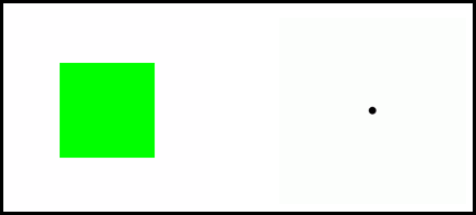 Look at the green square with one eye from a distance of approx. 15 cm. Close or cover the other eye. After approx. 20 seconds, look at the adjacent field. To aid orientation, the center is marked with a small dot. You will now see a reddish-pink square in the middle of the square surface that gradually fades.