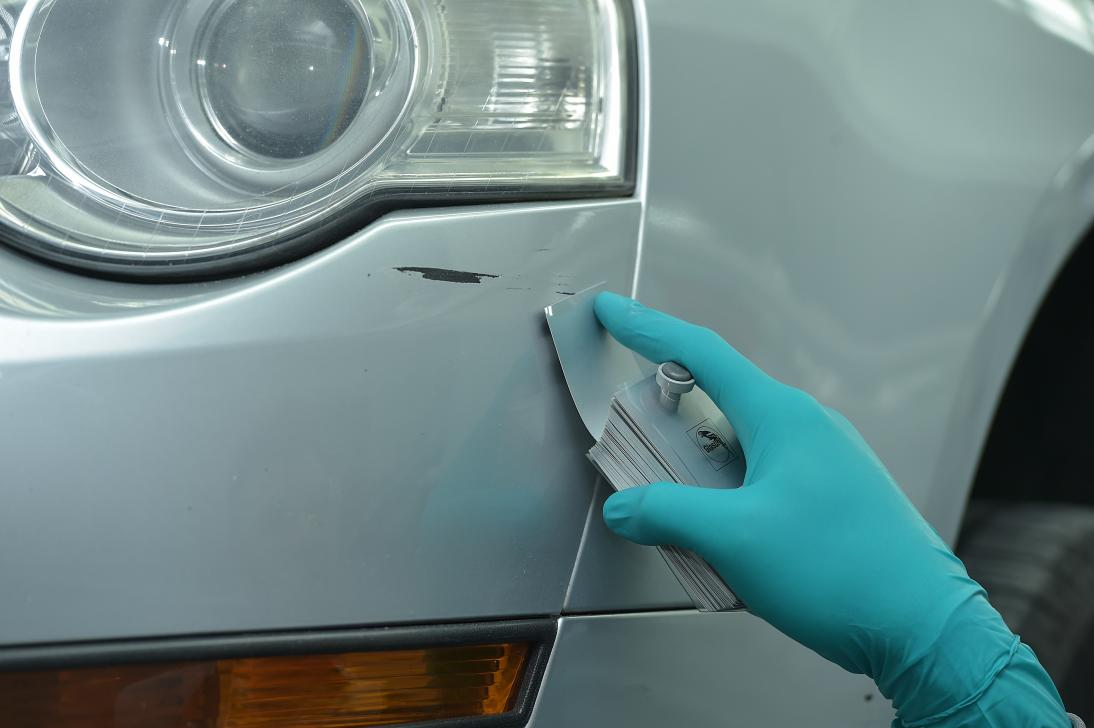 The CPS color chip must be held against the panel/vehicle part and inspected from different angles to establish whether the selected CPS chip matches all the different views, at least 2 different light sources and is suitable for matching the vehicle being repaired.