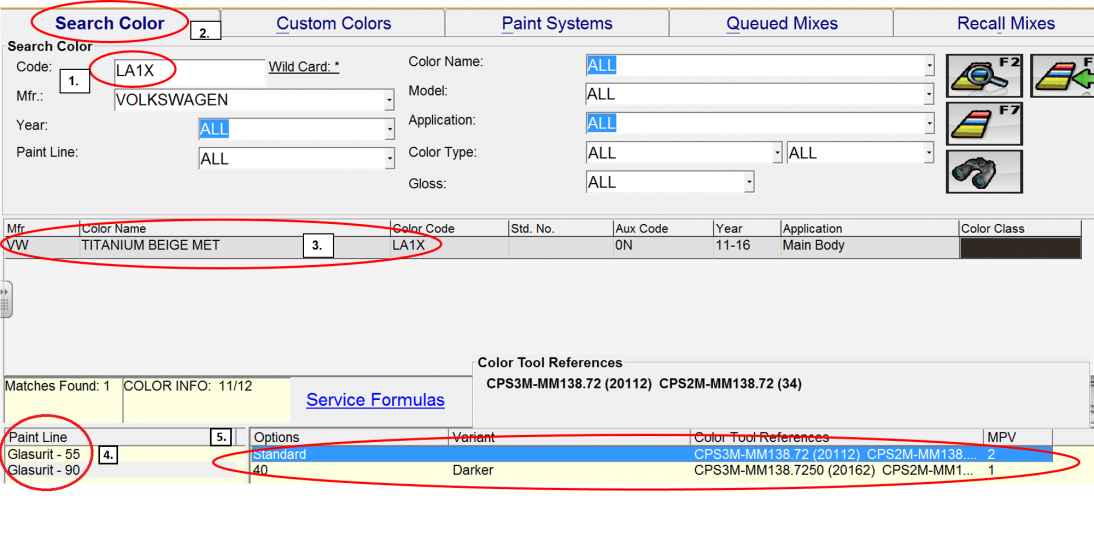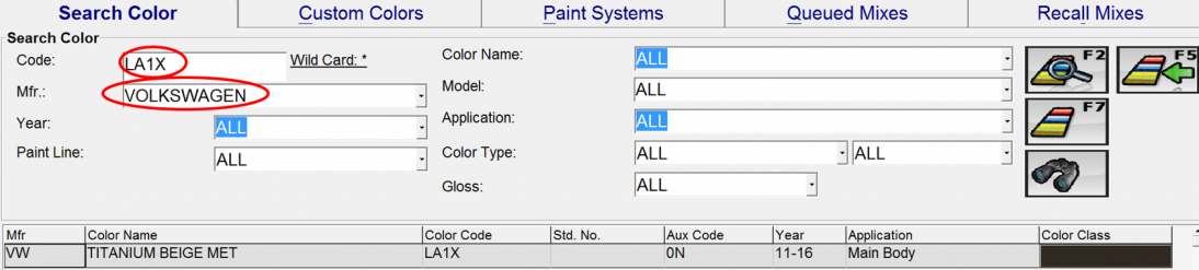- If one the selected color chips fits the vehicle then you can mix or select this formula by typing in the chip number or code into the color media.