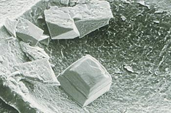 Hình ảnh kính hiển vi điện tử quét: Tinh thể muối trong vỉ mở. độ phóng đại 100 lần. |