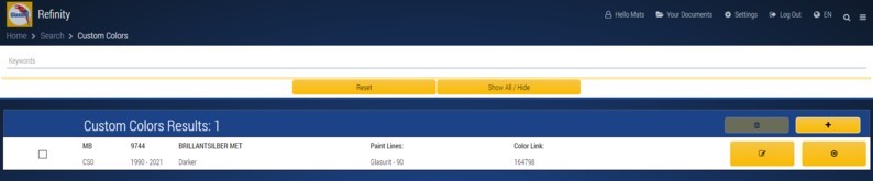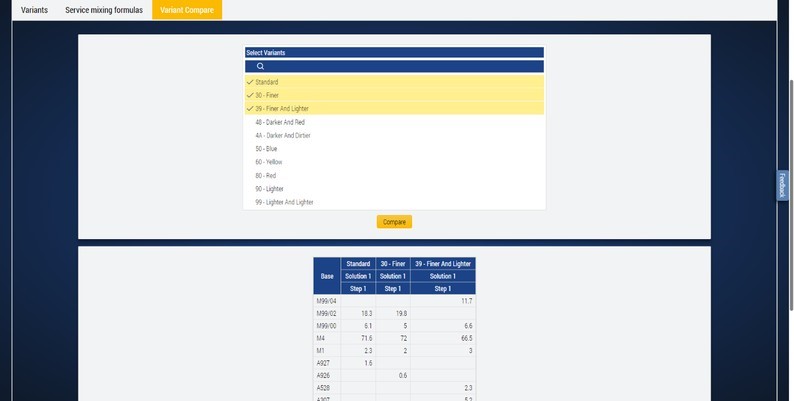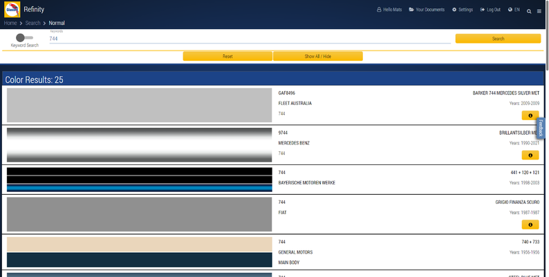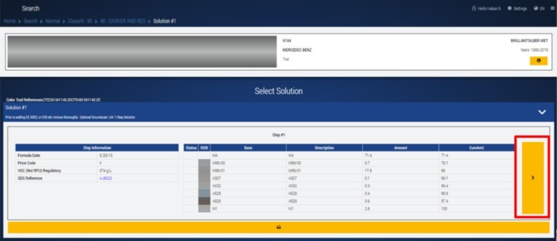 Lấy công thức màu OEM: Sử dụng Tìm kiếm từ khóa để tìm kiếm bằng cách sử dụng tên màu, tìm kiếm kết hợp với nhà sản xuất và mã, xe, v.v.