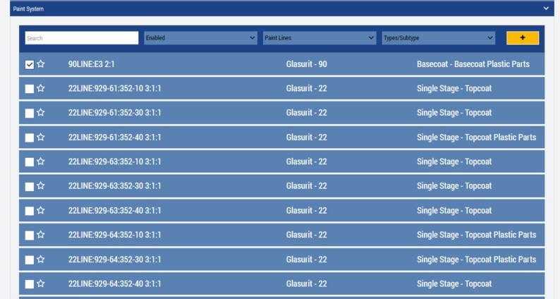 Từ phần này, bạn có thể kích hoạt tất cả các hệ thống sơn mà bạn sử dụng trong body shop của mình.