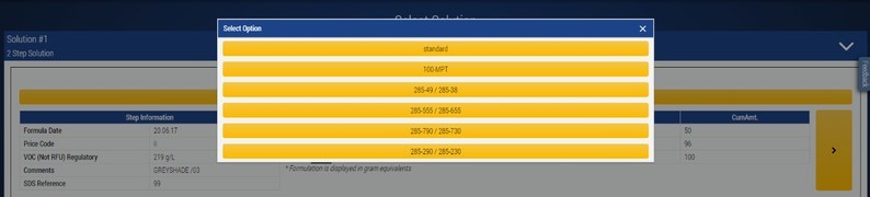 Các bước tiếp theo giống như chọn biến thể của bạn trong phần dải màu thông thường trong chương “Chọn biến thể chính xác và thông tin bổ sung” . Vui lòng chọn giải pháp của bạn sau đó chuyển đến màn hình giải pháp đã chọn.