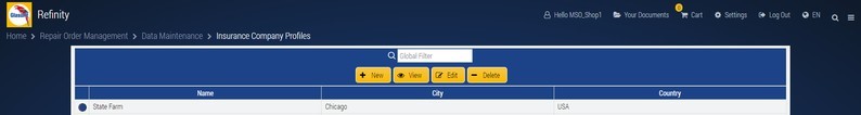 3. Hồ sơ Công ty Bảo hiểm: Bước này chứa thông tin quan trọng để tạo đơn hàng sửa chữa. Danh sách đầy đủ các hồ sơ công ty bảo hiểm đã tạo nằm ở đây và bạn có nhiều tùy chọn như tạo hồ sơ mới, chỉnh sửa, xem hoặc thậm chí xóa hồ sơ.
