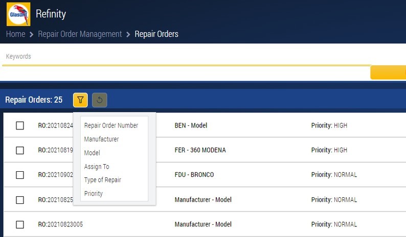 Repair order management: Main Menu -> Business -> Repair Order Management