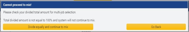 Nếu tổng tỷ lệ phần trăm không bằng 100%, hệ thống sẽ hiển thị một cửa sổ bật lên và hỏi bạn muốn tiếp tục như thế nào. Bạn có thể chia đều các tỷ lệ phần trăm và tiến hành pha hoặc quay lại và sửa các tỷ lệ phần trăm.