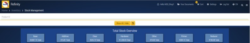 Chào mừng bạn đến với nền tảng Refinity mới của chúng tôi, nền tảng này sẽ giúp bạn quản lý hoạt động kinh doanh sơn của mình. Hướng dẫn này sẽ hiển thị cho bạn "Quản lý tồn kho" (Refinity - Inventory management). Nếu bạn cần hỗ trợ thêm, vui lòng liên hệ với các chuyên gia của Glasurit Việt Nam.
