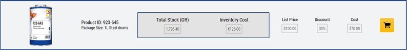 Trang chi tiết về giá cả sẽ cung cấp cho bạn thêm thông tin, chẳng hạn như chi phí tồn kho của sản phẩm, tổng chi phí tồn kho, số lượng sản phẩm và tổng số lượng hàng tồn kho của sản phẩm được kết nối trực tiếp với sản phẩm mà bạn đang có. Sự khác biệt giữa kho sản phẩm và tổng số cổ phiếu là kích thước lon. Bạn với tư cách là một body shop có thể quyết định mua cùng một sản phẩm với các kích thước hộp đựng khác nhau và đôi khi thậm chí có thể bạn có cùng một sản phẩm với các kích thước hộp khác nhau trong kho của mình. Kho sản phẩm cung cấp cho bạn thông tin về số lượng sản phẩm bạn hiện có ở kích thước lon cụ thể này. Tổng kho là tổng số lượng của sản phẩm này, dù cho nó ở bất cứ thùng chứa nào.